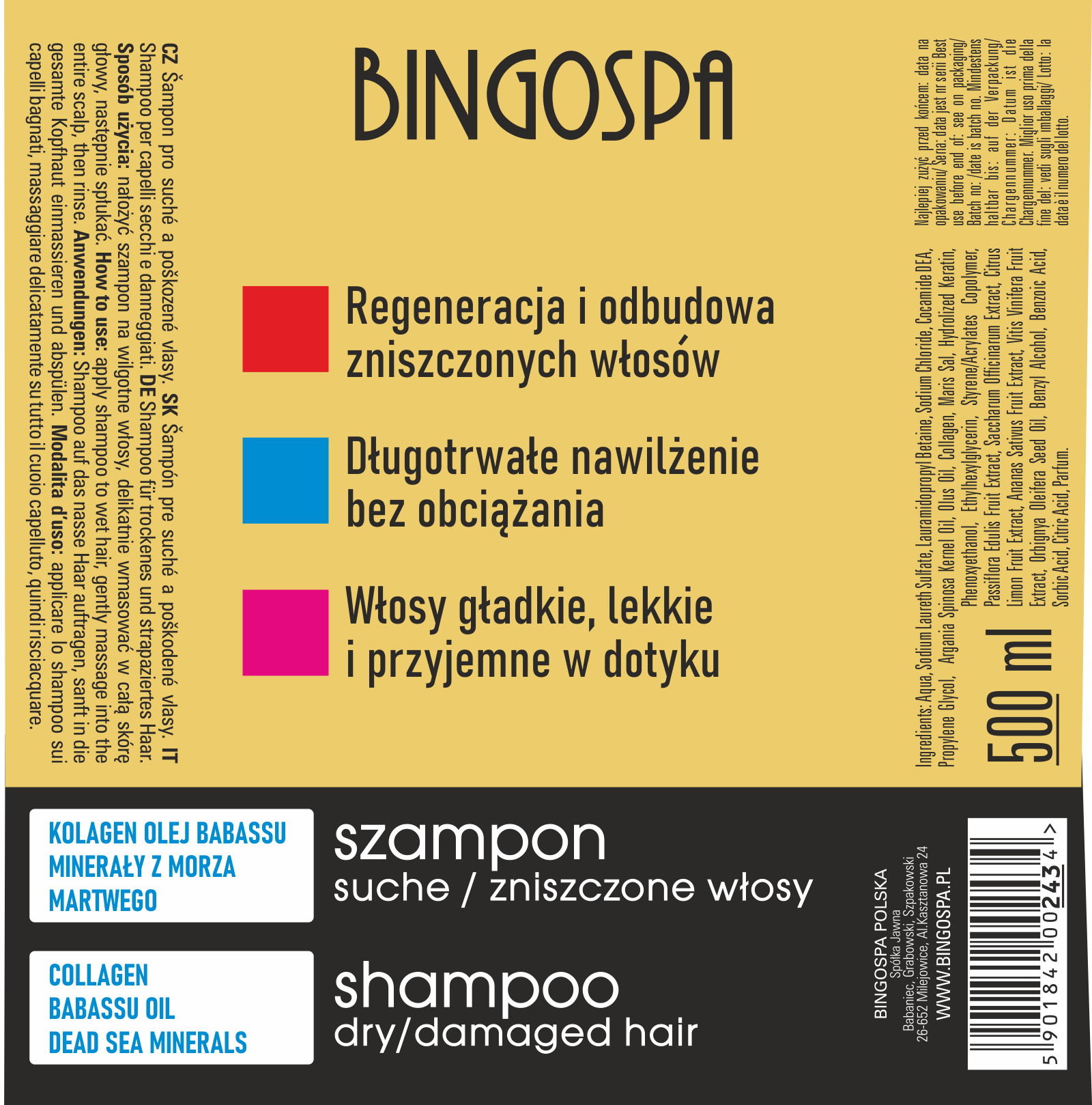 BingoSpa Hair Collagen with babassu oil intensively revitalising and hydrating for weakened, damaged hair. Protects the hair against free radicals, hydrates and nourishes. Hair looks healthy, shiny and strong, becomes easily manageable.