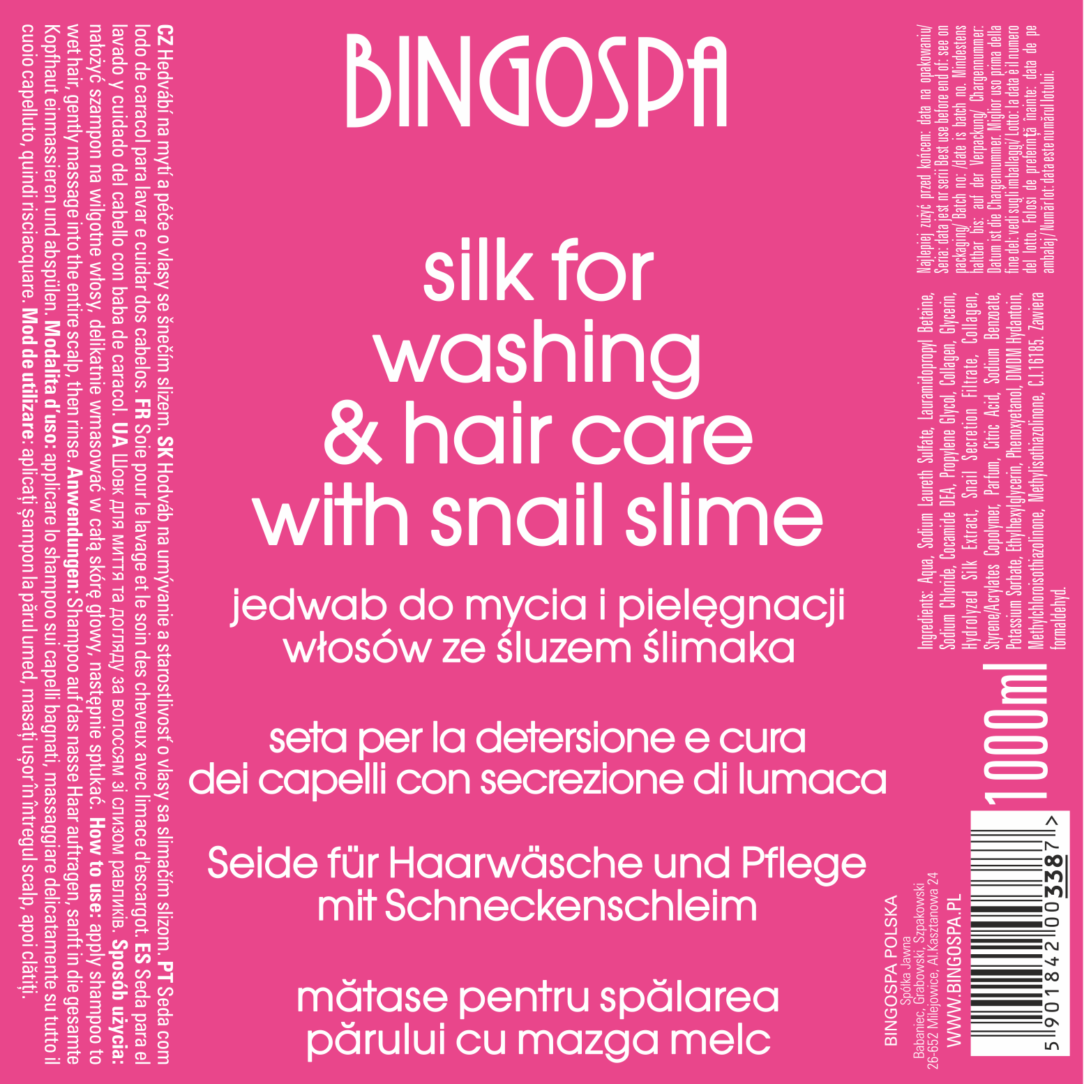 Silk for Washing & Hair Care with Snail Slime 1000ml BINGOSPA