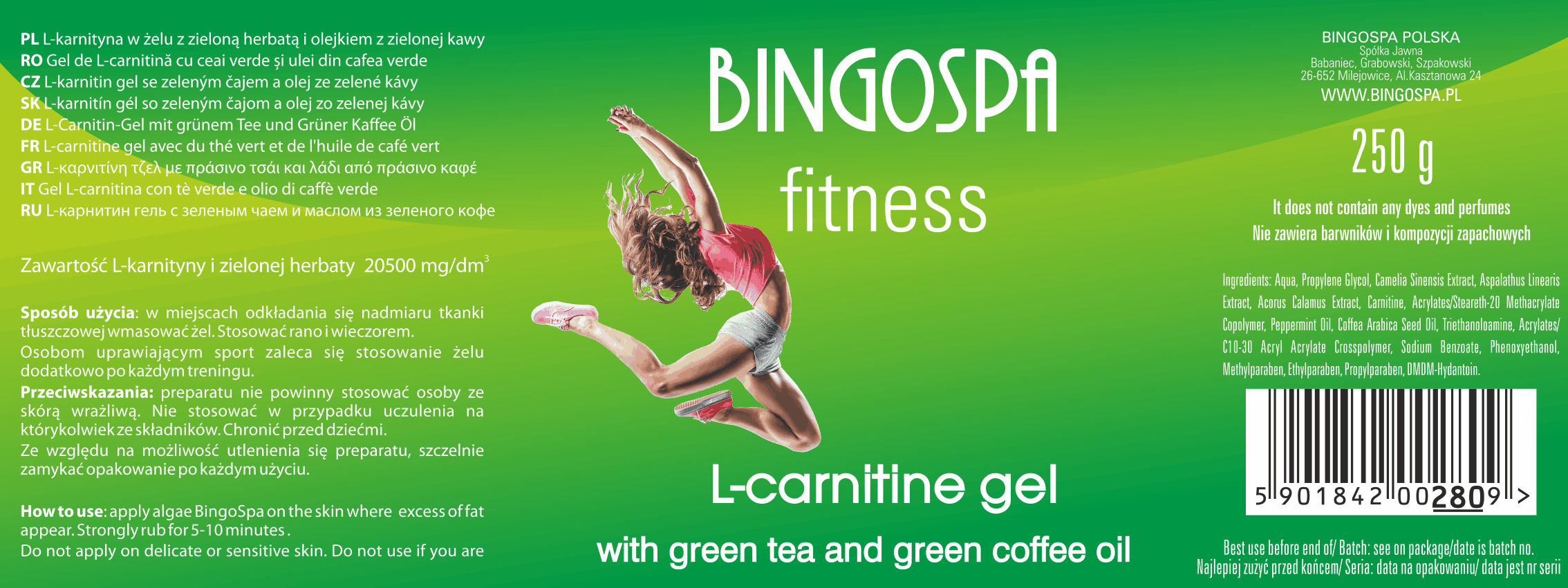 BINGOSPA L–carnitine gel with Green Tea and Green Coffee Oil
