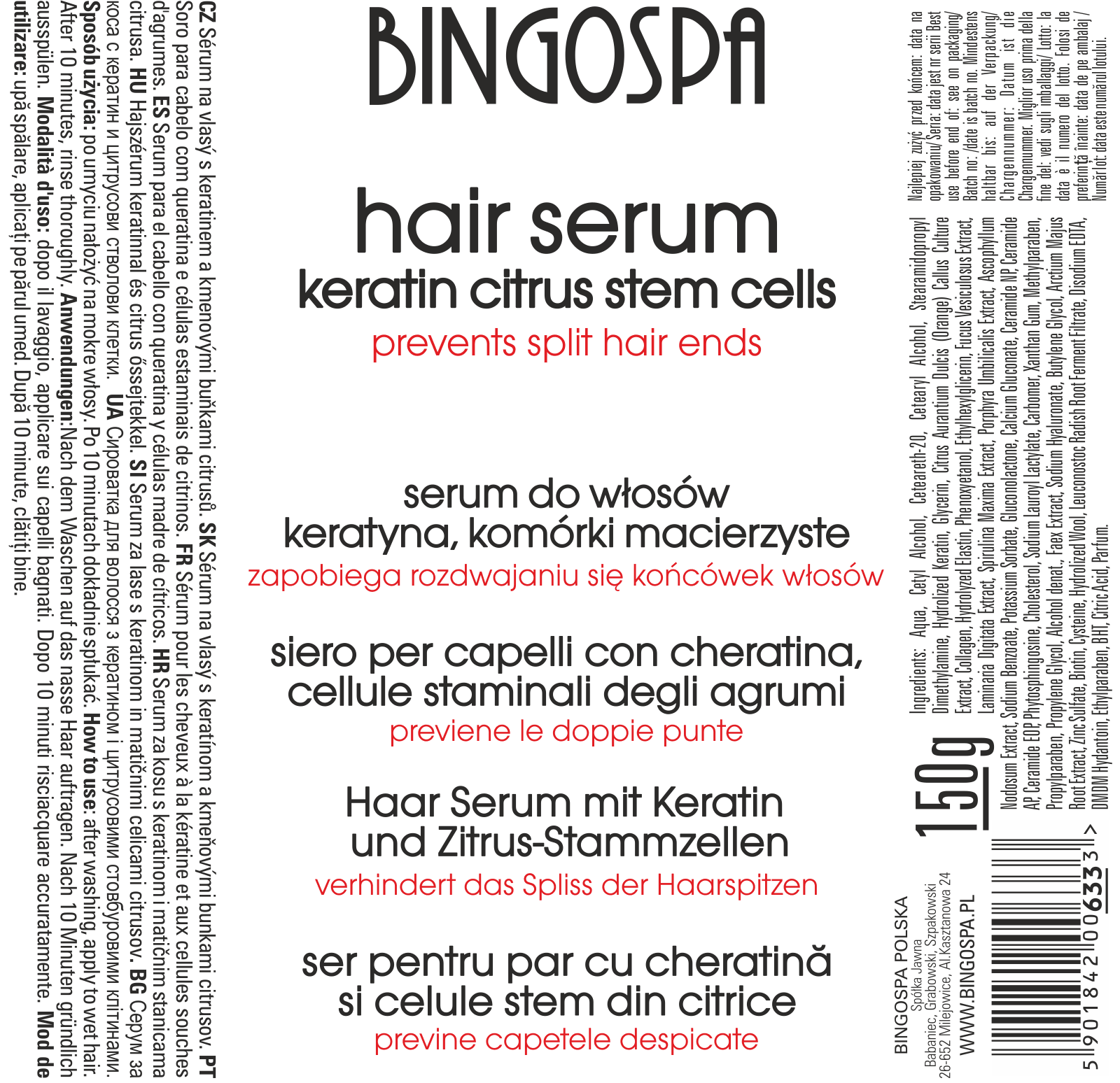 Hair Serum with Keratin and Citrus Stem Cells BINGOSPA