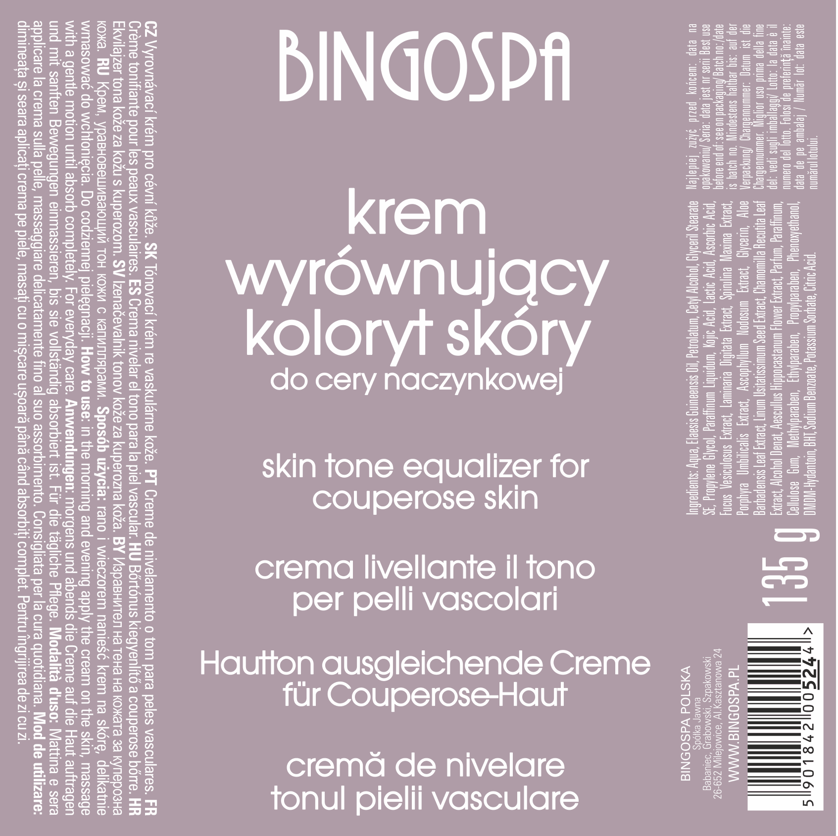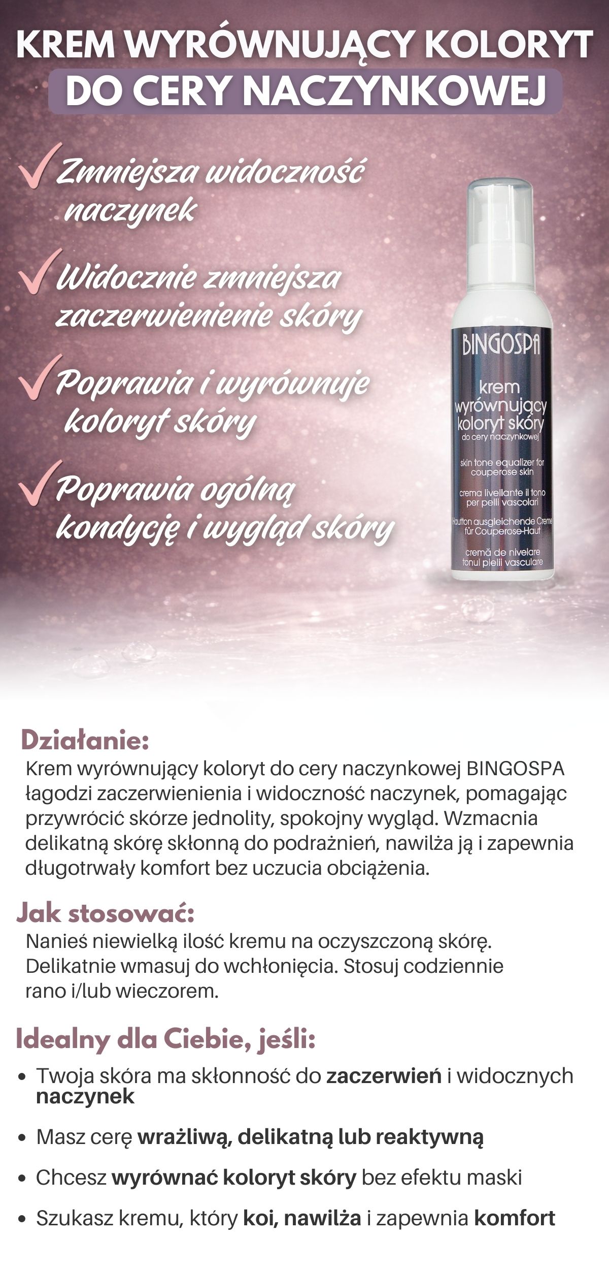 Krem wyrównujący koloryt do cery naczynkowej 135 g BINGOSPA